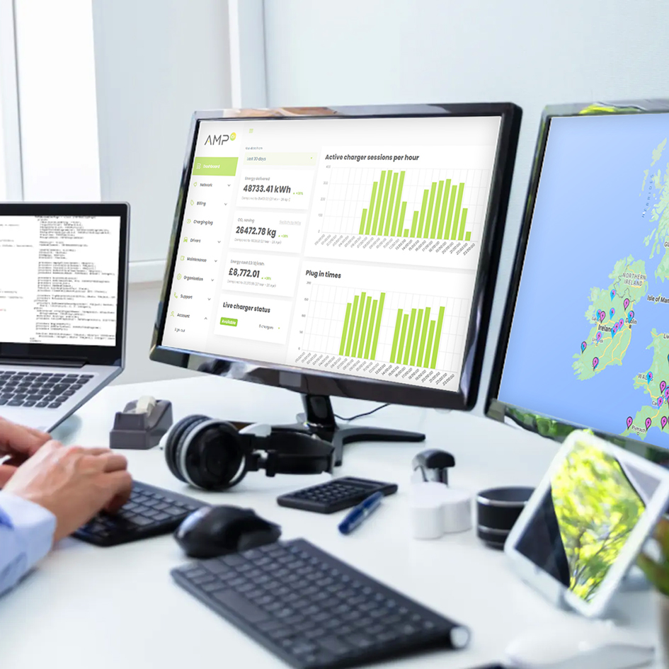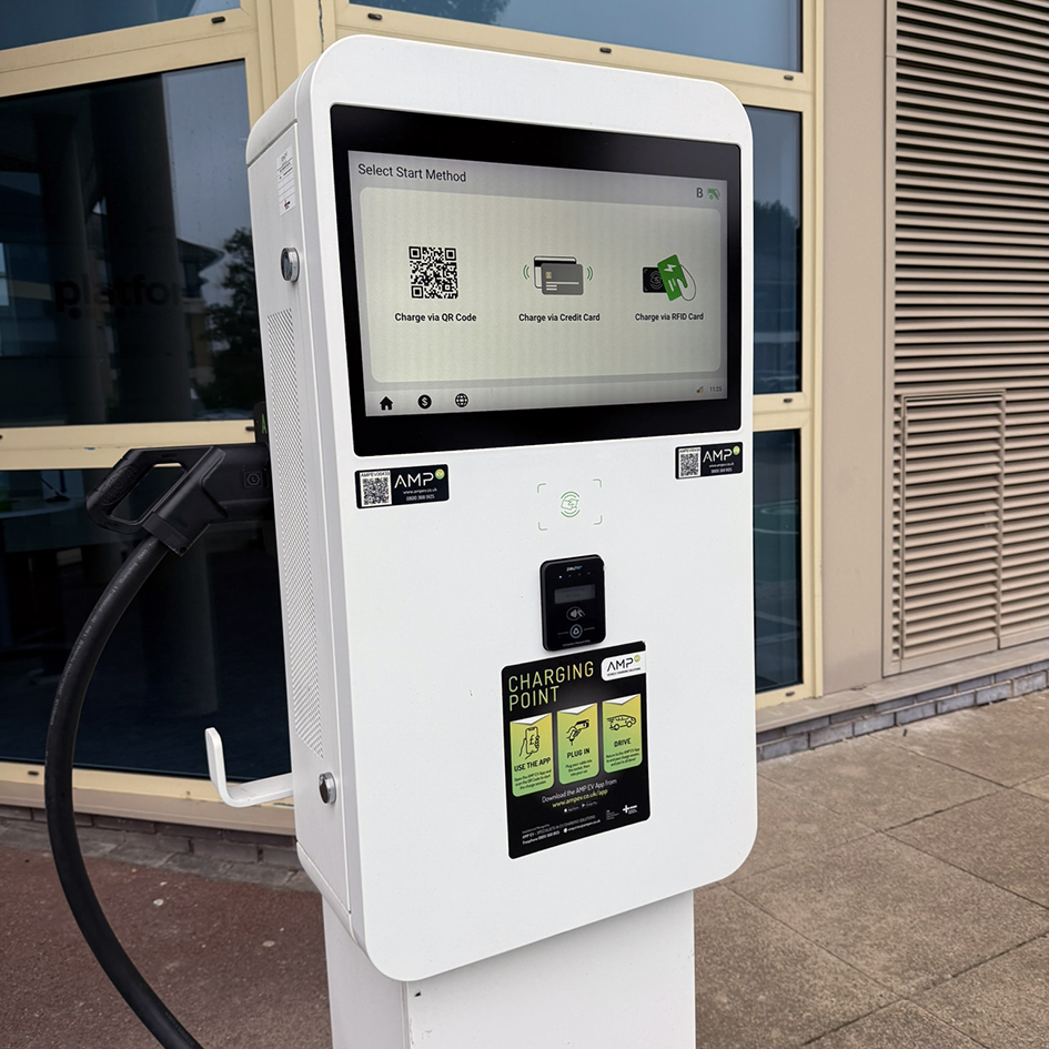 AMP EV offer corporate, public and commercial customers the full bespoke package for electric vehicle charge points and renewable technology systems.