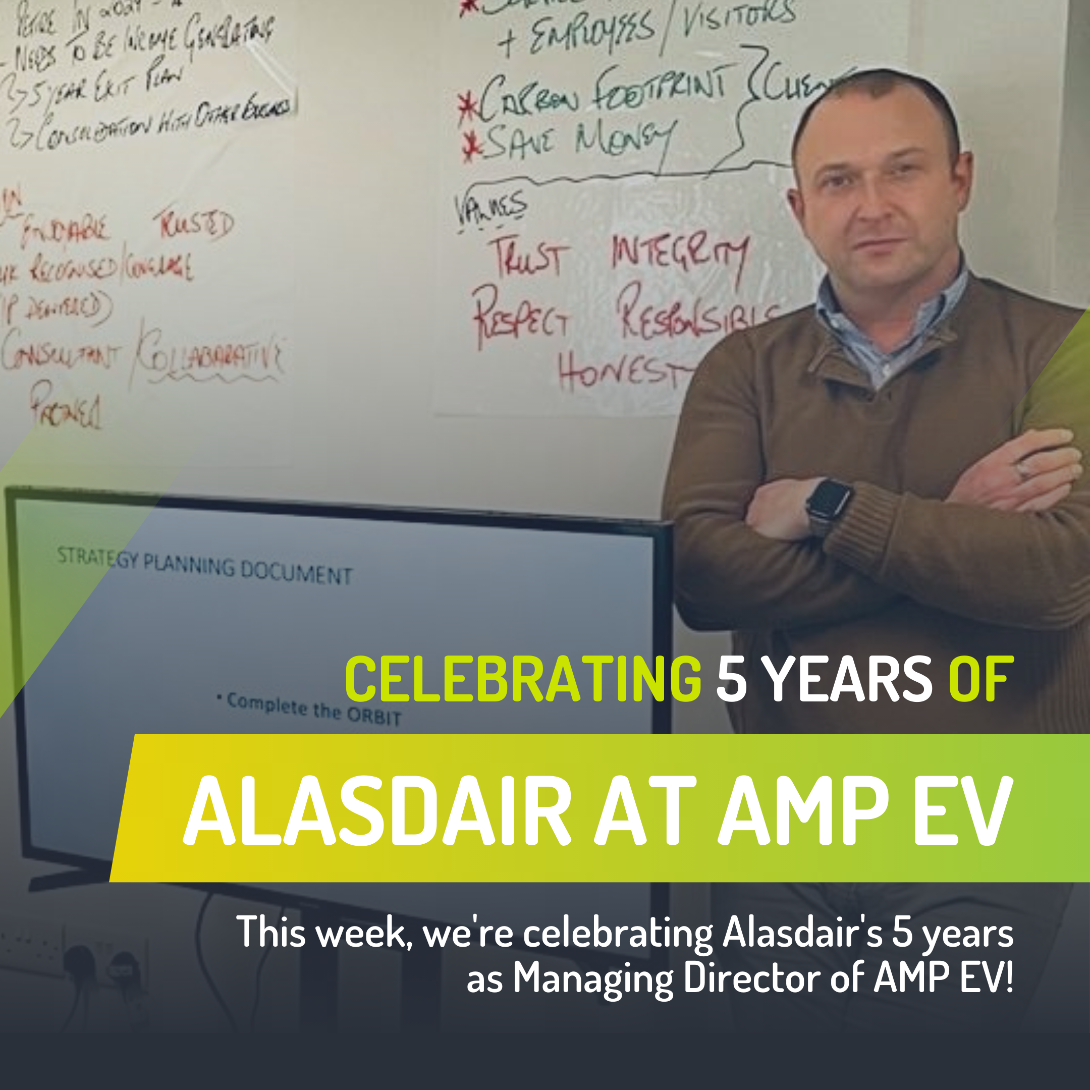 This week, we’re celebrating 5 years of Alasdair being with AMP EV!